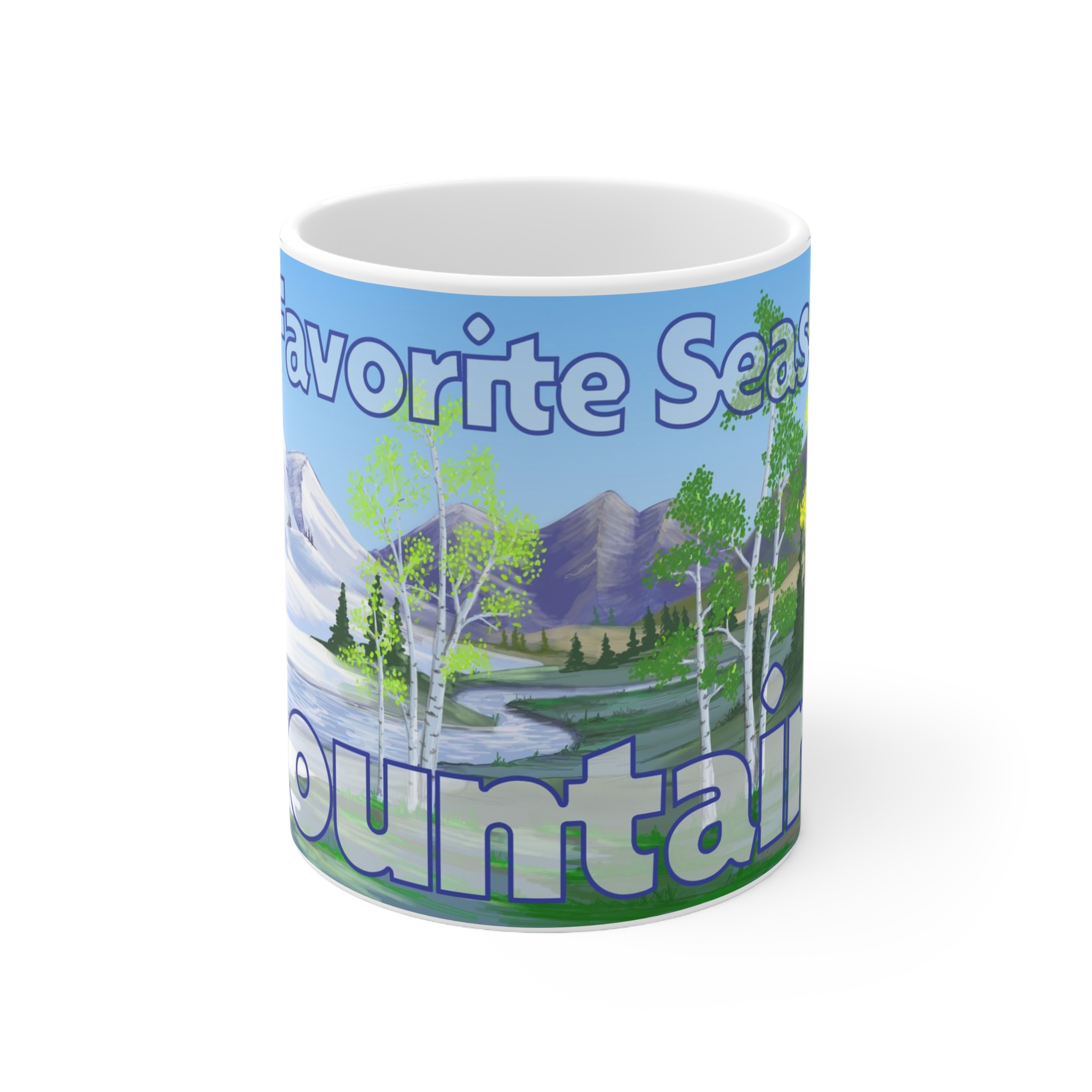 My Favorite Season Is Mountains! Celebrate your love for the mountains with one of these ceramic coffee cups representing all four seasons in the mountains.